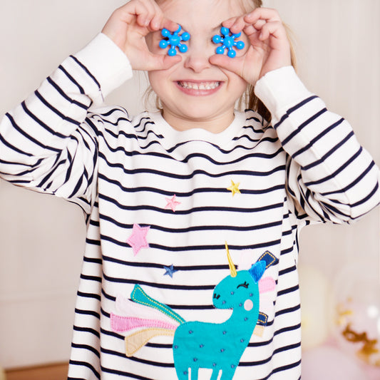 Stripy Star Unicorn Cotton Crewneck Sweatshirt