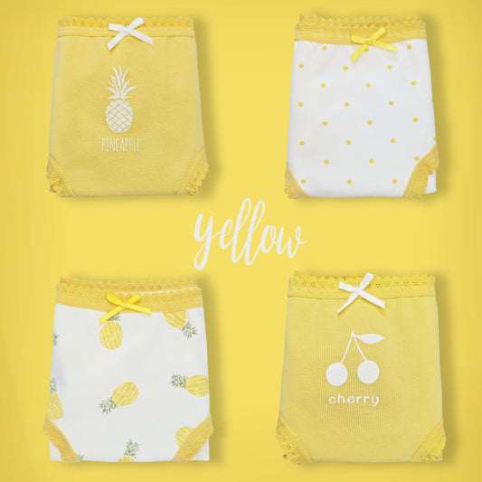 Moon Under the Bridge Girls' Soft Cotton Knickers Underwear Pack of 4 - Yellow