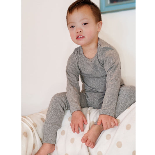 Grey Long Sleeve Soft Comfy Cotton Base Layer Pyjama Set